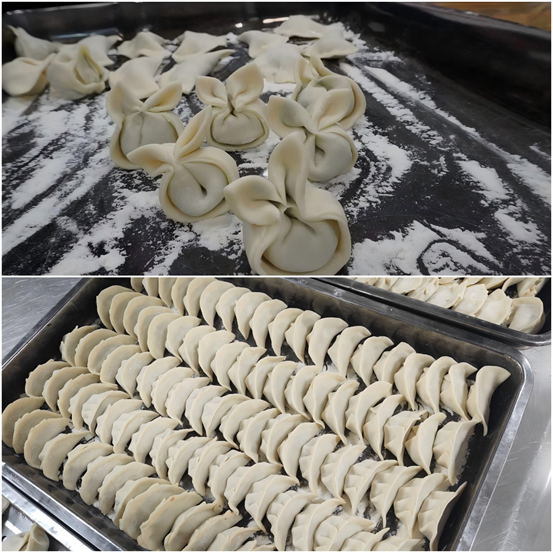 活动开始后,大家自由组合,每组都分配到了足够的材料。在欢声笑语中,同学们纷纷动手,填馅捏合,每一个步骤都充满了乐趣。大家配合默契,忙得不亦乐乎,有的同学手法娴熟,包出的饺子形状规整,宛如一件件精美的艺术品;有的同学则略显生疏,但也认真专注,努力学习包饺子的技巧。不少同学还展示了自己独特的包饺子技巧,月牙形、元宝形、小兔子,形状各异的饺子让人眼前一亮。