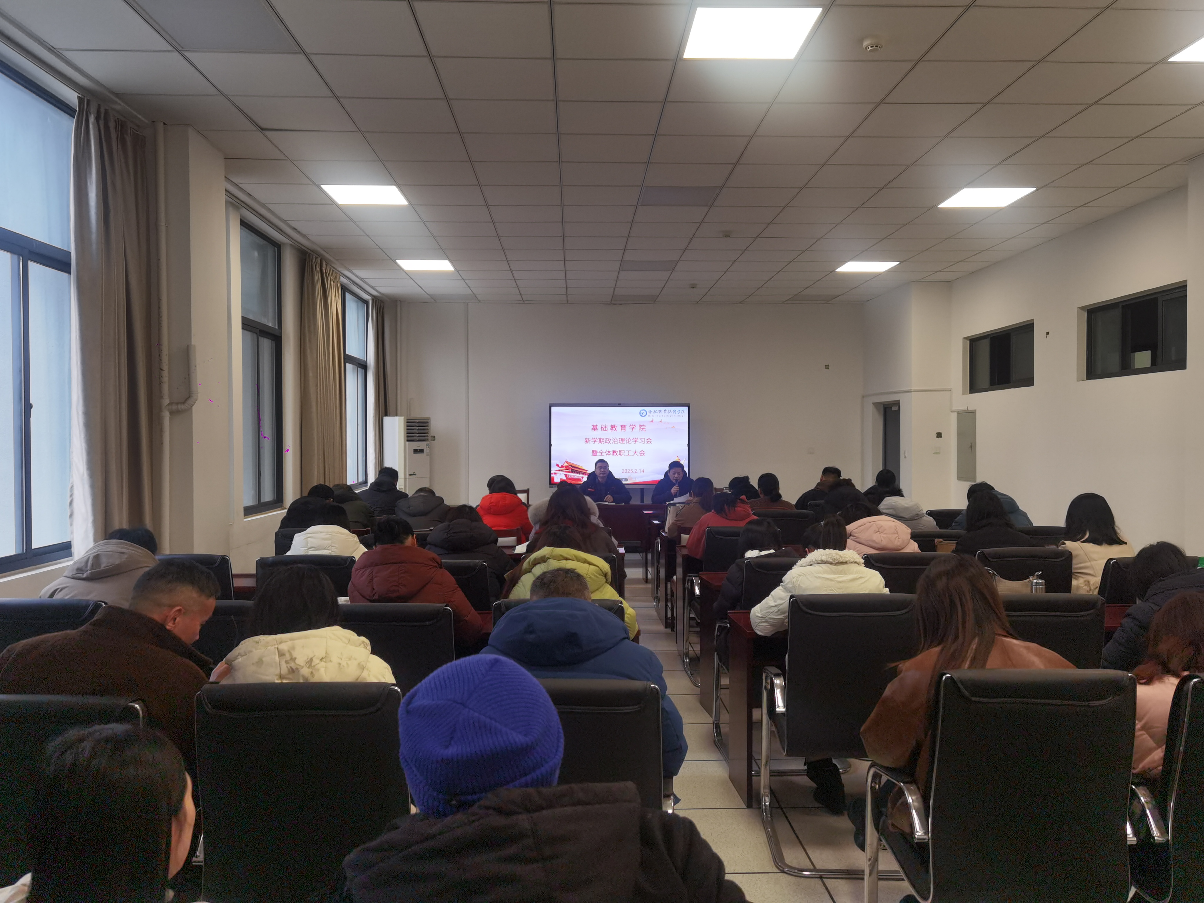 2月14日下午,基础教育学院全体教职工在汇心湖校区基础教育学院二楼会议室开展新学期政治理论学习会暨全体教职工大会,会议由基础教育学院副院长(主持工作)施敏发主持。
