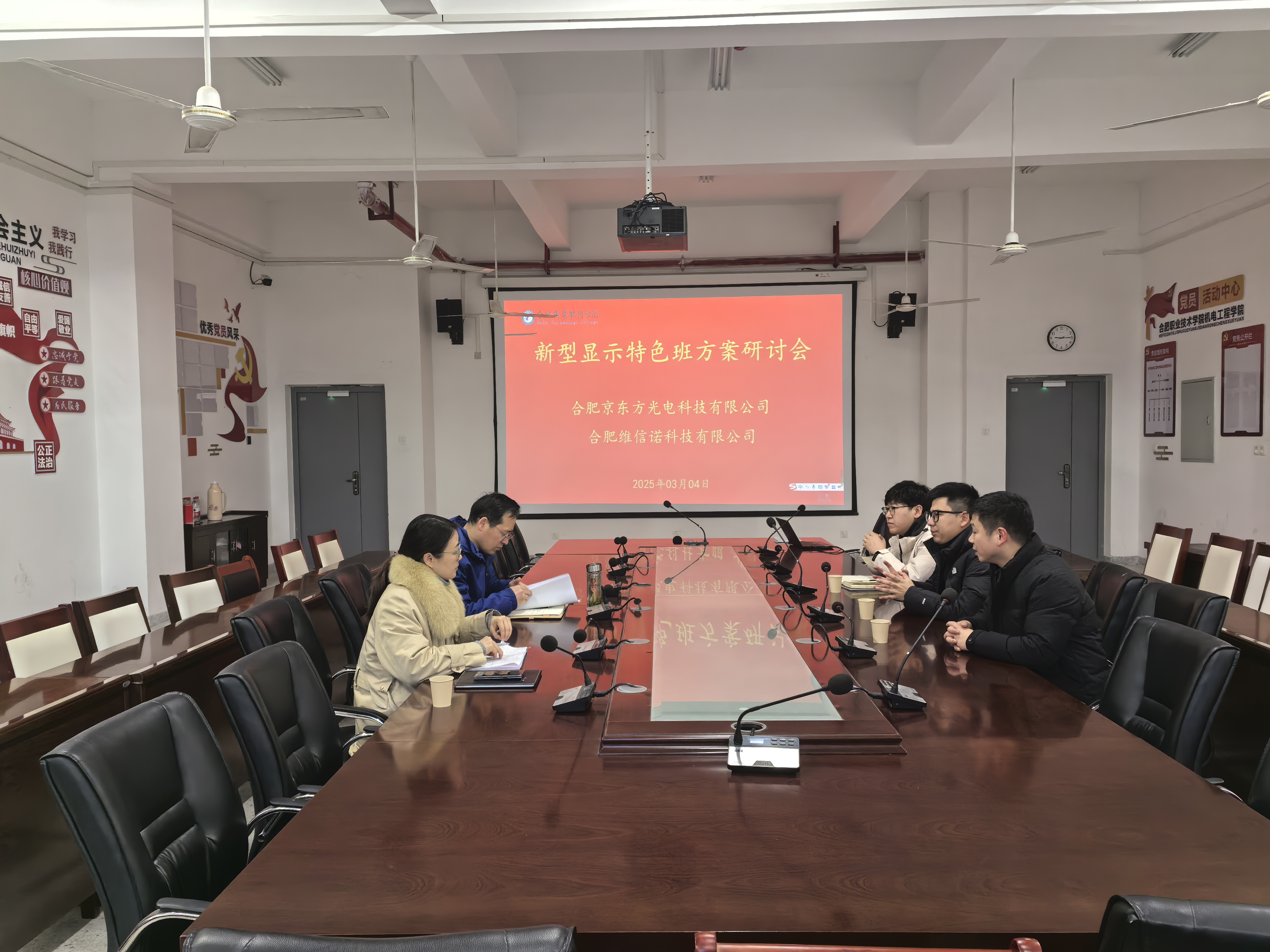 为进一步深化产教融合,推动校企合作,合肥京东方光电科技有限公司、合肥维信诺科技有限公司相关职务人员,于3月4日上午来到机电工程学院,就校企合作组建新型显示特色班工作,展开了细致具体的研讨。