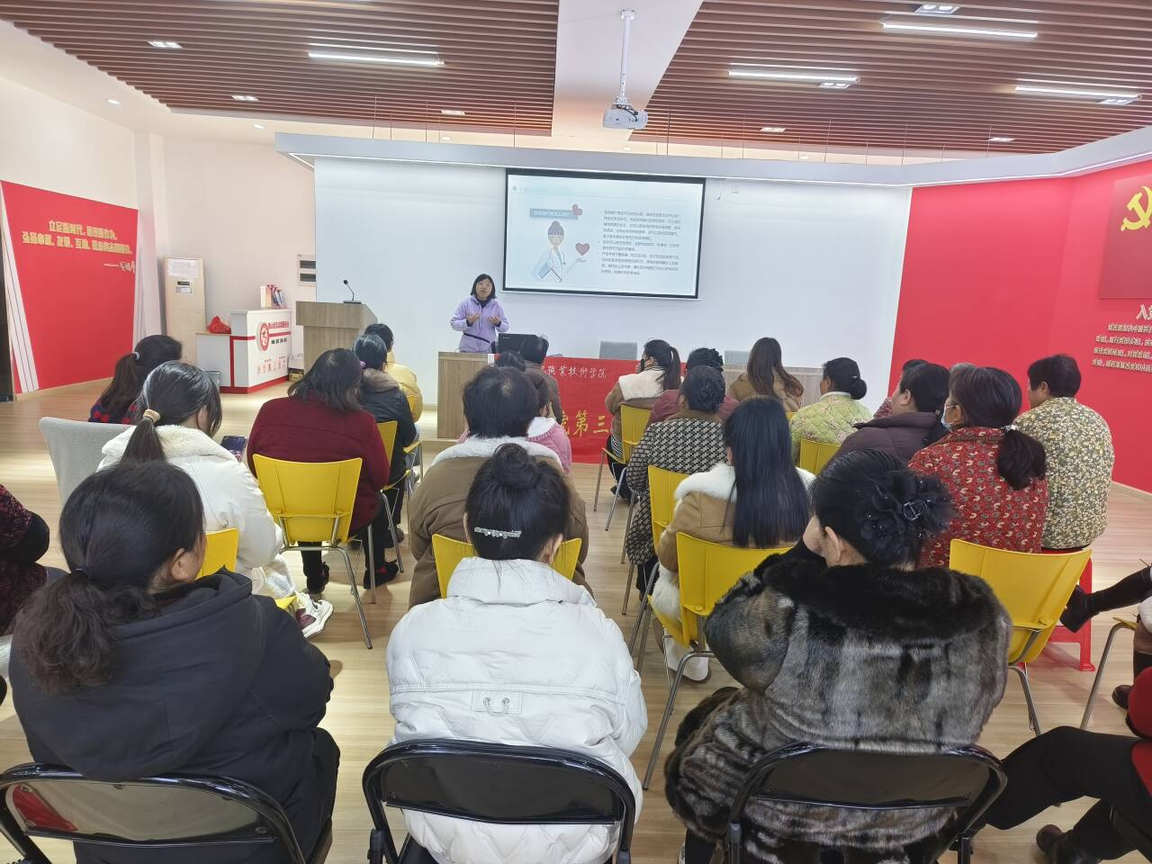 3月7日上午,医学院专业教师周忠玲走进西山社区,为广大妇女同志带来了一场干货满满的健康讲座。她的讲解深入浅出,内容丰富多元,从宫颈癌、乳腺癌等严重威胁女性健康的疾病预防与治疗,到更年期保健、生殖健康等不同生理阶段的关键问题,周老师都进行了详细阐述。她着重强调定期体检是守护健康的重要防线,还普及了HPV疫苗接种、两癌筛查等实用知识。此外,心理健康知识的讲解也十分贴心,引导女性学会情绪管理和压力调节,保持良好的心理状态。