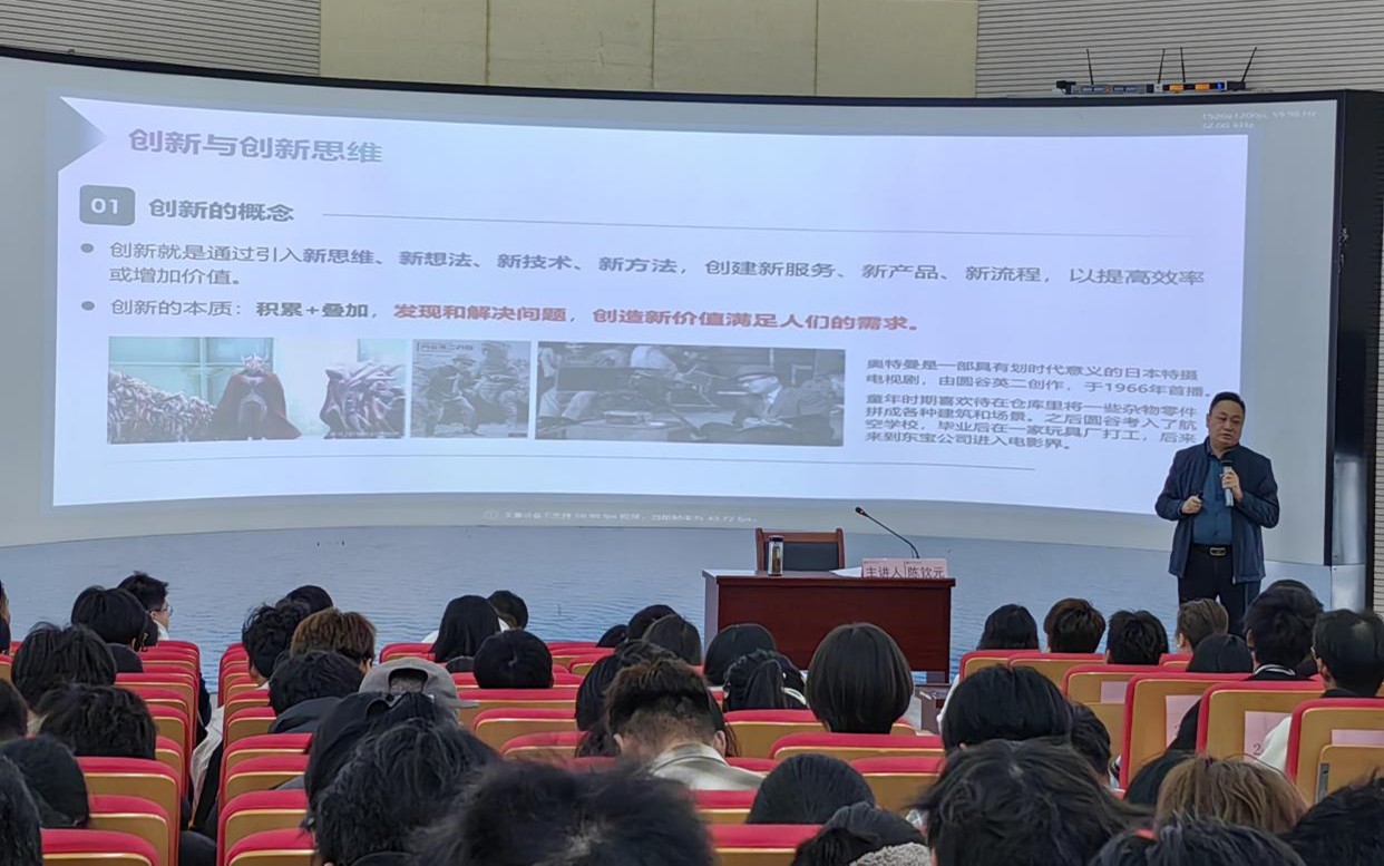 陈钦元以上映后不断刷新票房纪录的《哪吒2之魔童闹海》为切入点,对创新的概念、创新的类型、为什么要创新及如何创新等方面作了简要介绍,对创新大赛背景、赛道与组别、参赛条件、奖项设置、赛道评分规则等方面进行了分析,并详细解读了大赛备赛流程和重点,同时结合案例,分析了撰写商业计划书的底层逻辑,向与会人员分享了自己在往届大赛中的指导经验,给了现场师生很大的启发。