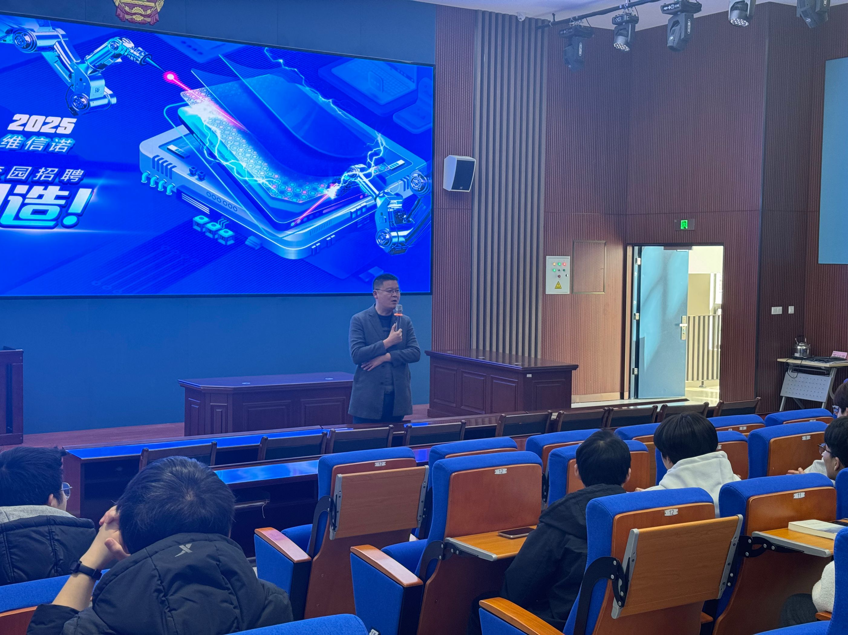3月19日下午,合肥维信诺-Beat365唯一官方网站宣讲招聘会在Beat365思政馆举办,新站高新区人才服务中心副主任彭俊,合肥维信诺科技有限公司人力资源部招聘经理常腾飞,机电工程学院、信息工程与传媒学院、轨道交通学院2023级学生100余人参加宣讲招聘会。会议由学生处处长王克勇主持。