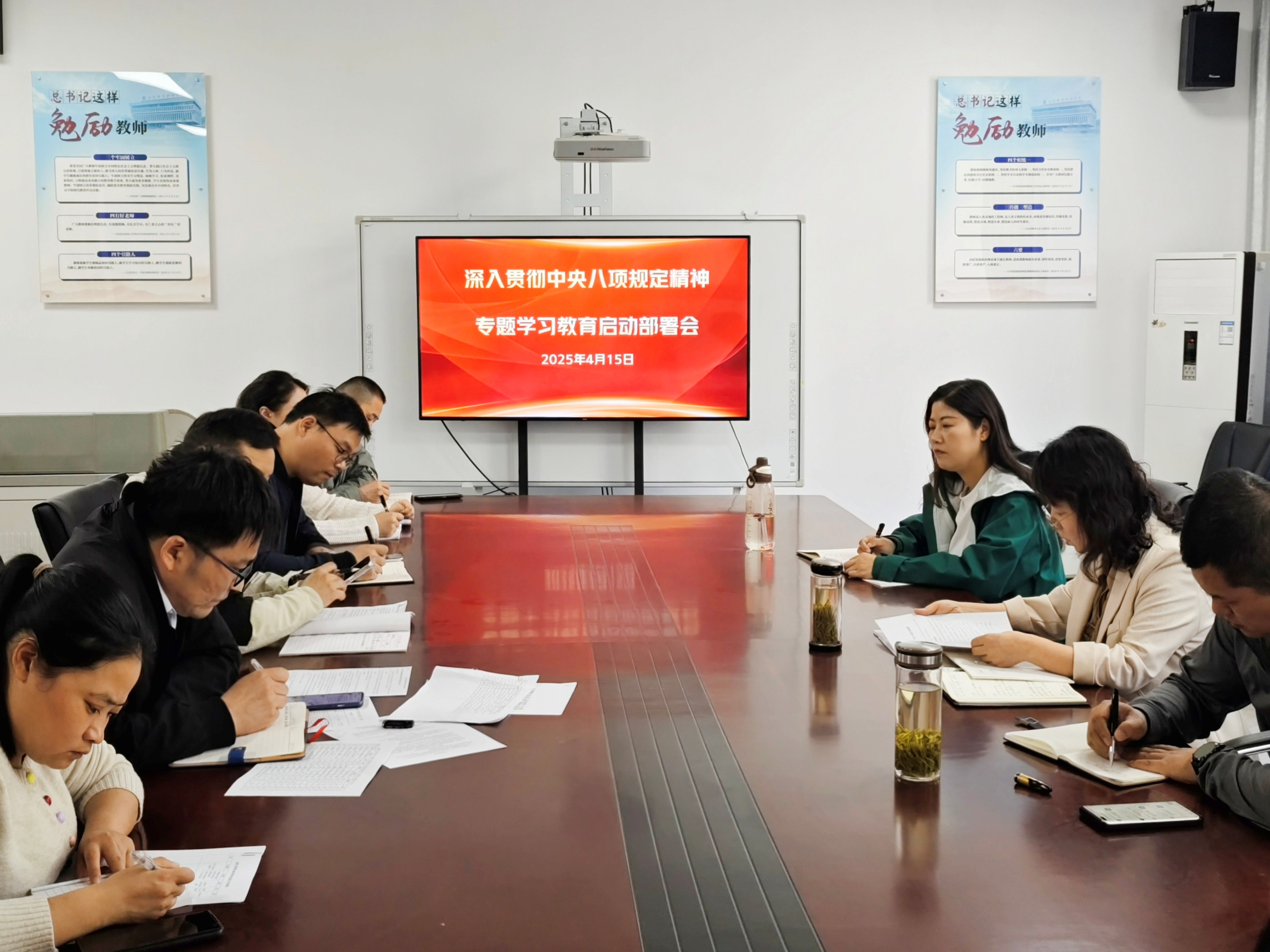 会上,丁怡琴领学了中共中央办公厅《关于在全党开展深入贯彻中央八项规定精神学习教育的通知》,并传达省委、市委有关会议精神。随后,施芳芳详细解读了校党委《关于开展深入贯彻中央八项规定精神学习教育的工作方案》,并就该院开展此项工作进行部署。