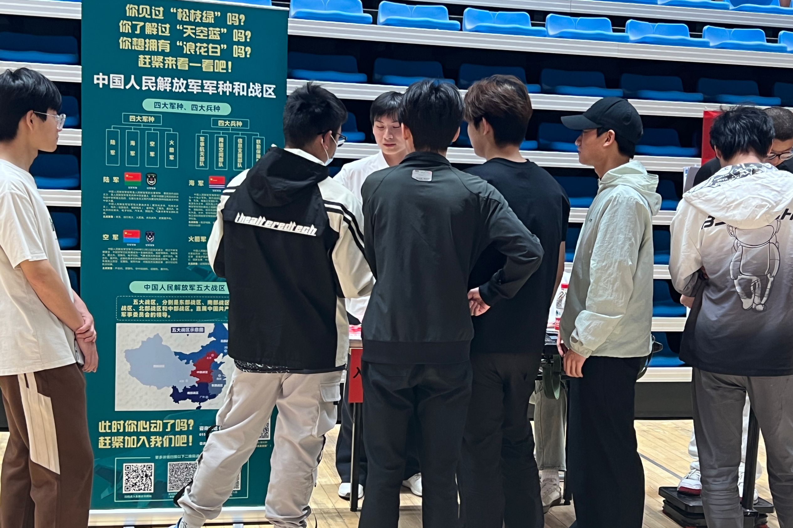 校园招聘会征兵宣传:以专业姿态筑梦国防事业。4月16日,校园招聘会现场,国旗护卫队指导老师翟亚敏来到现场指导,队员们分工协作,细致接待每一位咨询者。有人负责登记信息,有人耐心讲解政策,有人协助整理资料,整个团队如同一台精密运转的机器,高效而有序。活动后,他们反复核对登记的联系方式,将散落的宣传单页收拢成整齐的方阵,每一页都承载着参军热望,等待下一次破土抽芽。