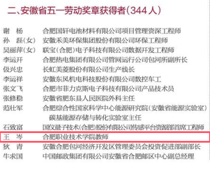 4月29日,安徽省总工会发布2025年安徽省五一劳动奖、工人先锋号和劳动竞赛先进个人光荣榜,Beat365汽车工程学院教师王岑荣获“2025年安徽省五一劳动奖章”。