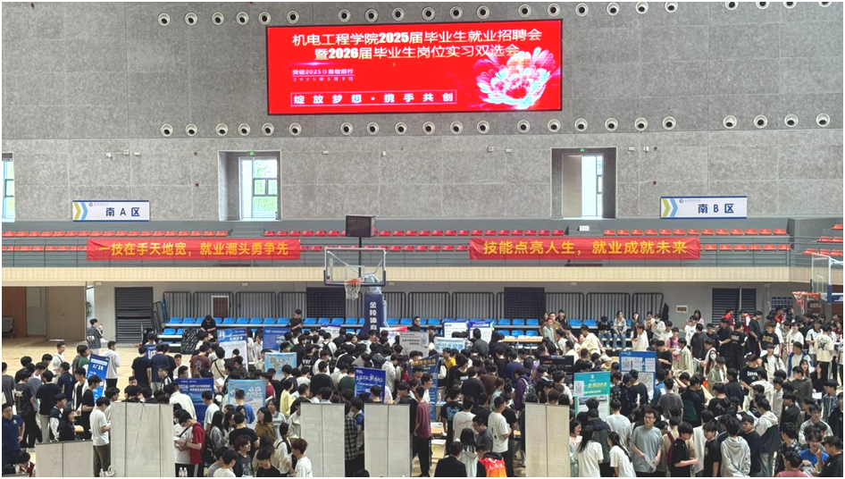 为搭建校企合作优质平台,助力学生高质量就业,5月9日,机电工程学院在汇心湖校区室内体育馆举办2025届毕业生就业双选会暨2026届毕业生岗位实习双选会。校党委书记王杰才,副书记金飞燕,党委委员、组织人事部长张如宝来到现场指导,机电工程学院党政负责人、实习指导教师、专兼职辅导员全程参与。本次双选会吸引了与该院专业匹配度高、合肥市内的36家知名企业参加,提供就业及实习岗位1000余个。