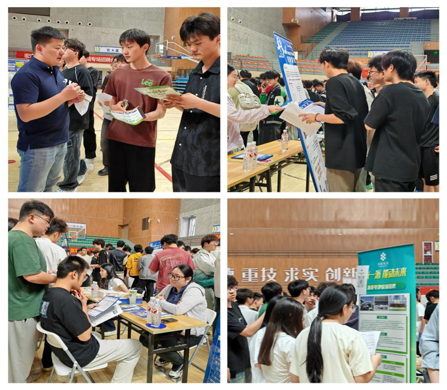 双选会现场,合肥京东方、合肥维信诺、合肥长安汽车、合肥海尔洗衣机、合肥中都机械等多家行业重点企业在展位前热情接待面试学生,招聘人员通过宣讲、一对一咨询答疑等方式向学生介绍企业概况、岗位需求及职业发展路径,助力职业启航。