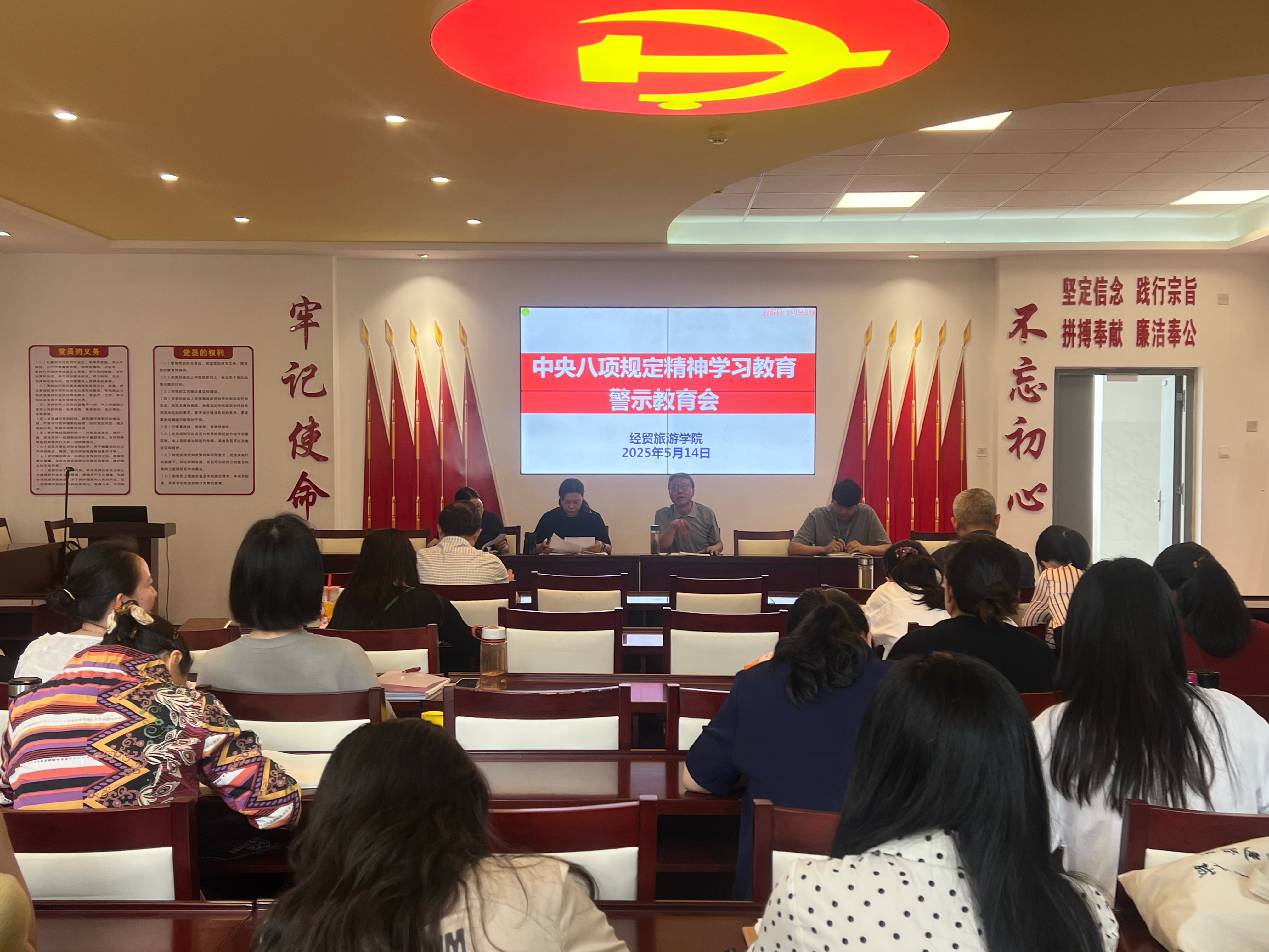 为深入贯彻中央八项规定精神,进一步加强党风廉政建设,提高全体教职工纪律意识,5月14日,经贸旅游学院在党性体验馆召开深入贯彻中央八项规定精神学习教育警示教育会。该院全体教职工参加会议,会议由该院副院长付晓兰主持。