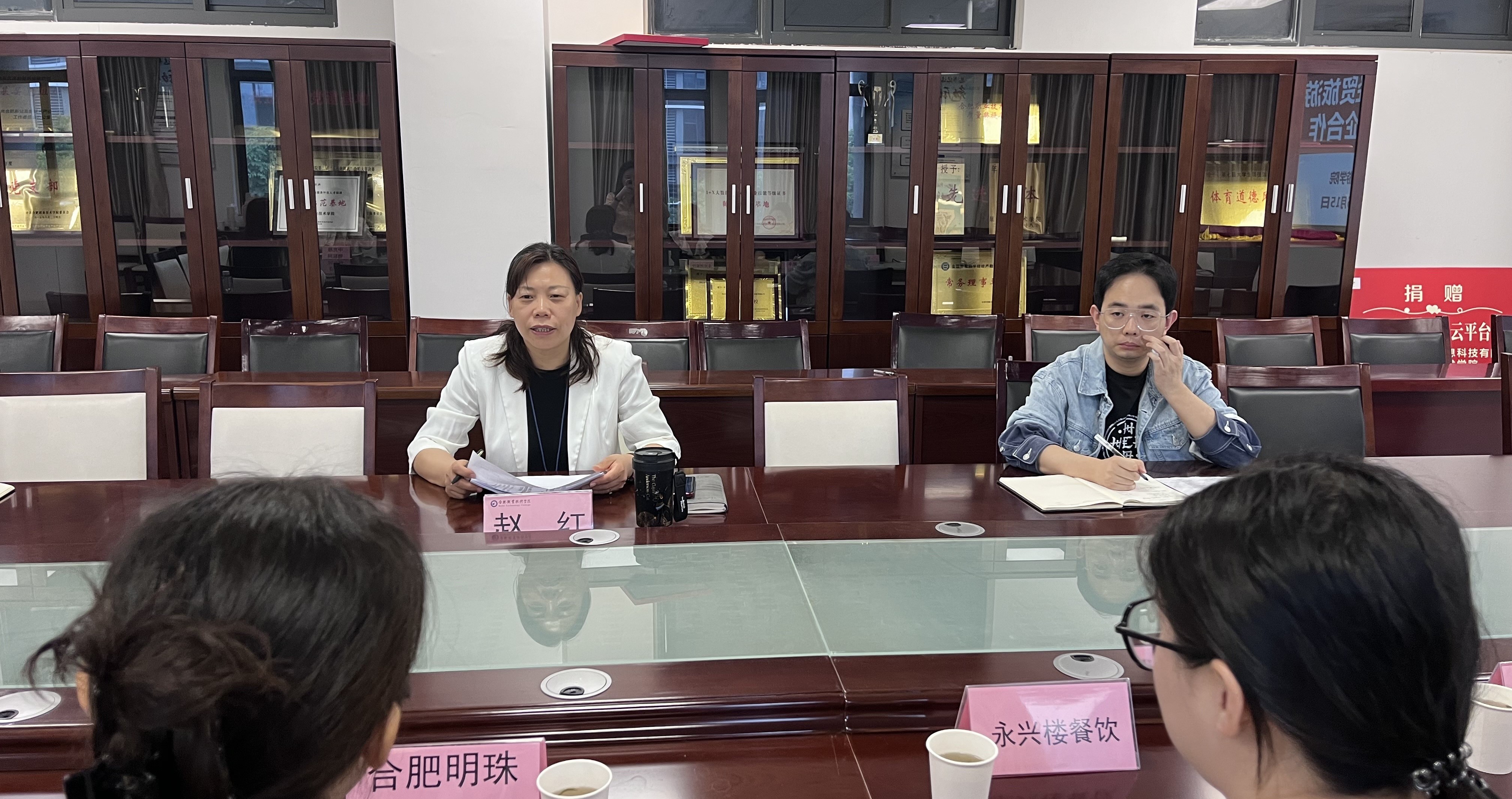 企业进校园作为贯通职业教育和就业市场的重要纽带,是深入践行党的二十大精神、创新驱动产教深度融合的举措,旨在构建校企协同育人新机制,促进教育链与产业链的有机衔接,实现人才培养与产业需求的双向赋能和可持续发展。为打造校企合作共赢、共谋发展的良好局面,5月15日上午,安徽通信产业服务有限公司终端渠道运营分公司、安徽顺丰通讯服务有限公司、安徽非羽网络科技股份有限公司、合肥中充服物联网科技有限公司、安徽永兴楼餐饮文化投资有限公司、合肥明珠悦居酒店管理有限公司等6家知名企业代表受邀到访经贸旅游学院,就学生实习就业、校企合作等事宜展开深入交流。经贸旅游学院院长赵红主持会议,教学办主任、就业负责老师、实习负责老师共同参会。