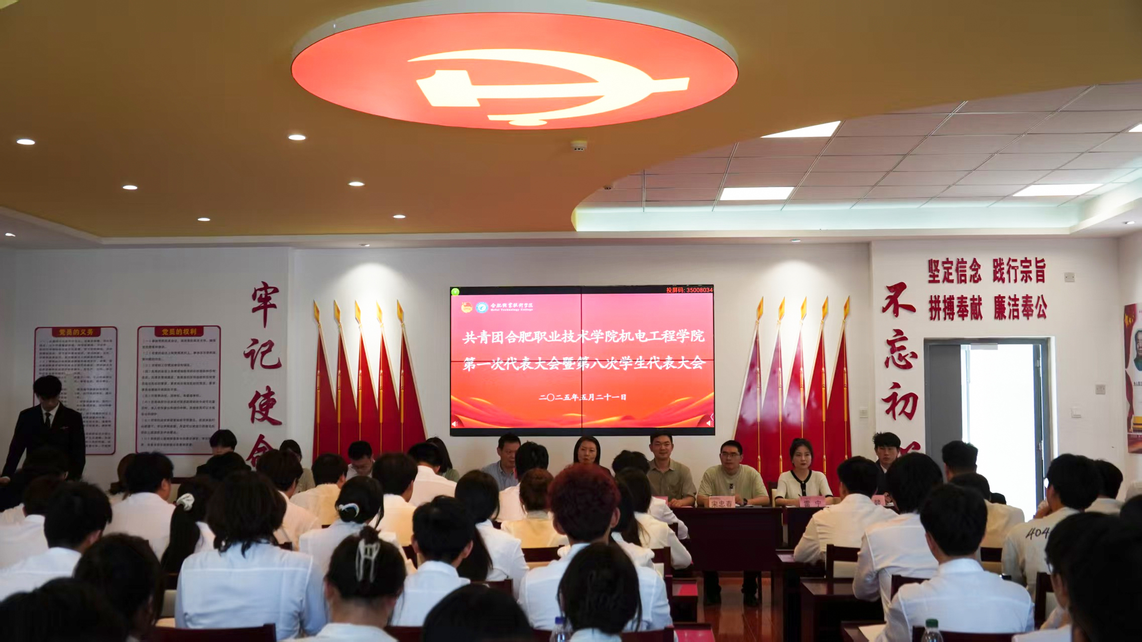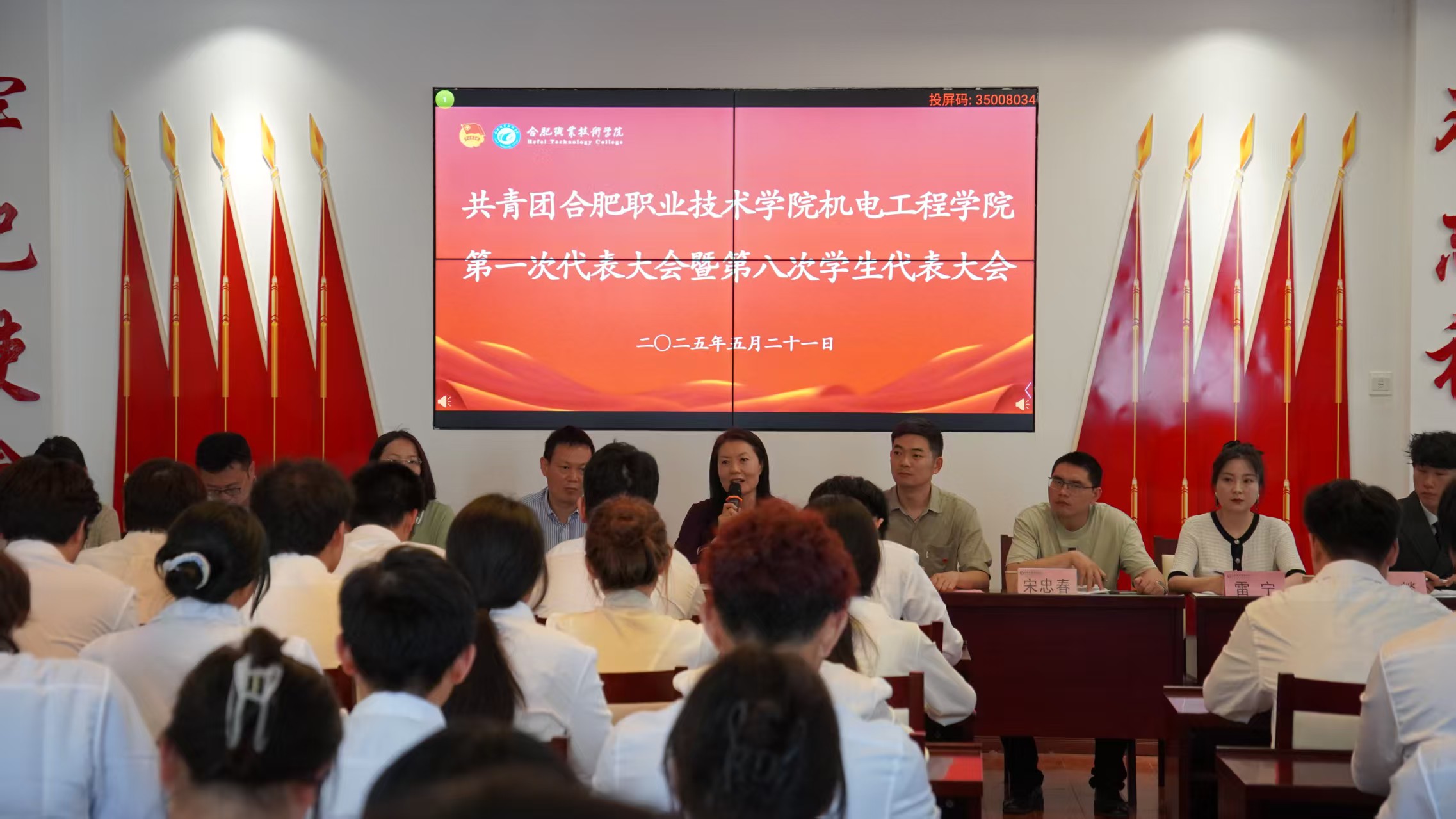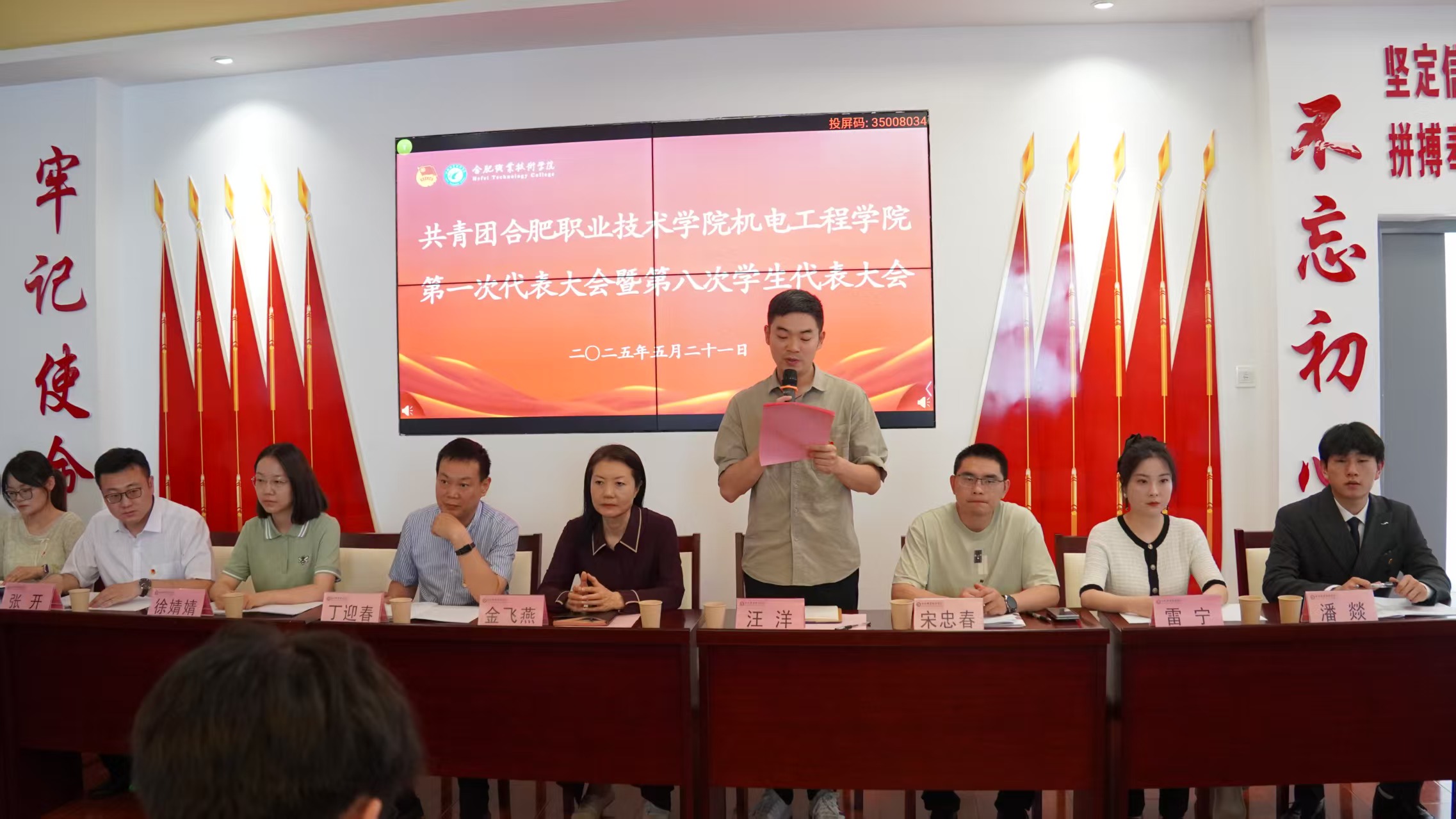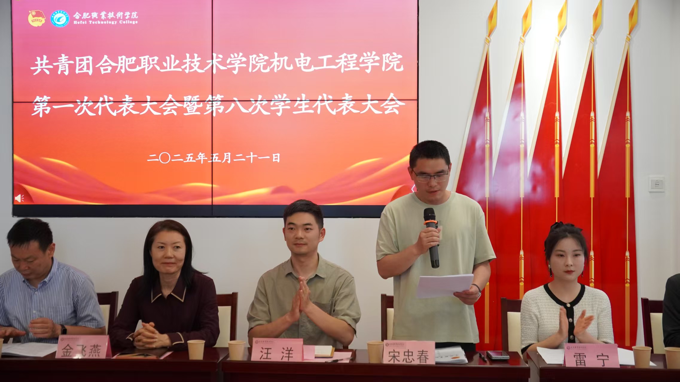 5月21日,共青团Beat365唯一官方网站机电工程学院第一次代表大会暨第八次学生代表大会在汇心湖校区召开。校党委副书记金飞燕,校团委副书记汪洋出席开幕会并讲话,机电工程学院党总支副书记(主持工作)丁迎春,该院副书记宋忠春,该院团总支负责教师、专职辅导员教师、校学生会主席潘燚以及机电工程学院132名正式代表参加此次大会。