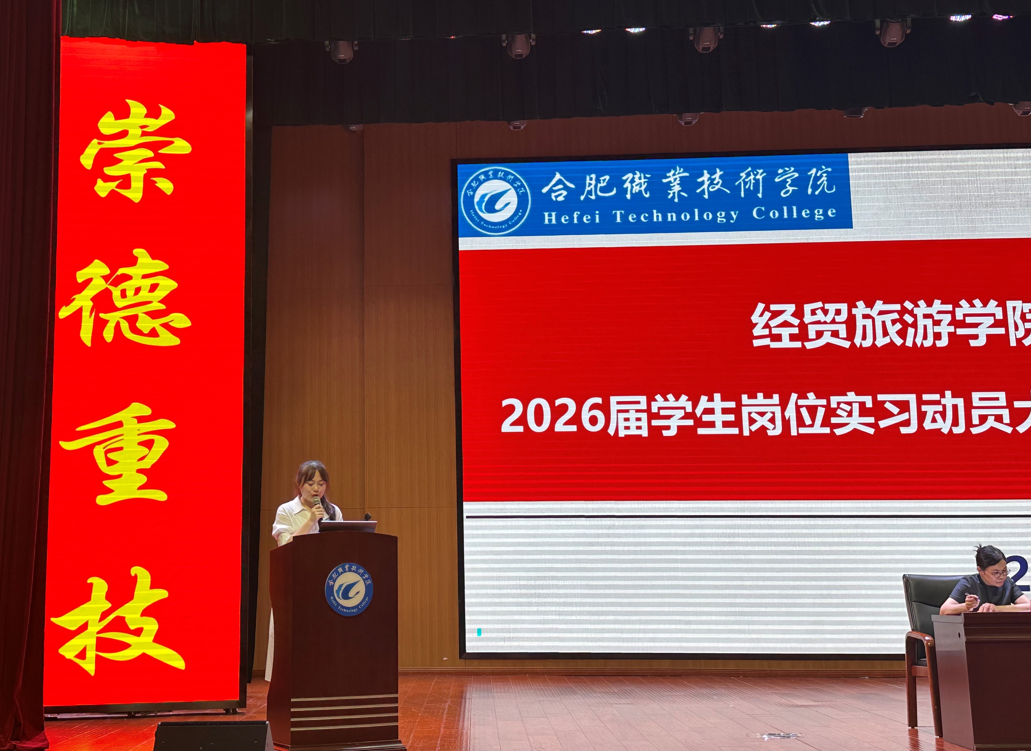 为进一步使学生明确毕业生岗位实习必要性,强化2026届毕业生岗位实习过程管理,扎实推进实习与就业工作方案,促进校企深度合作和高质量就业,5月21日下午,经贸旅游学院在汇心湖校区大学生活动中心礼堂召开2026届学生岗位实习动员大会。该院党总支书记梅亚松、党总支副书记赵倩倩、院长赵红、副院长付晓兰出席会议,会议由赵倩倩主持,教学办、学管办、实习指导教师等人员,全体2026届毕业生参加大会。