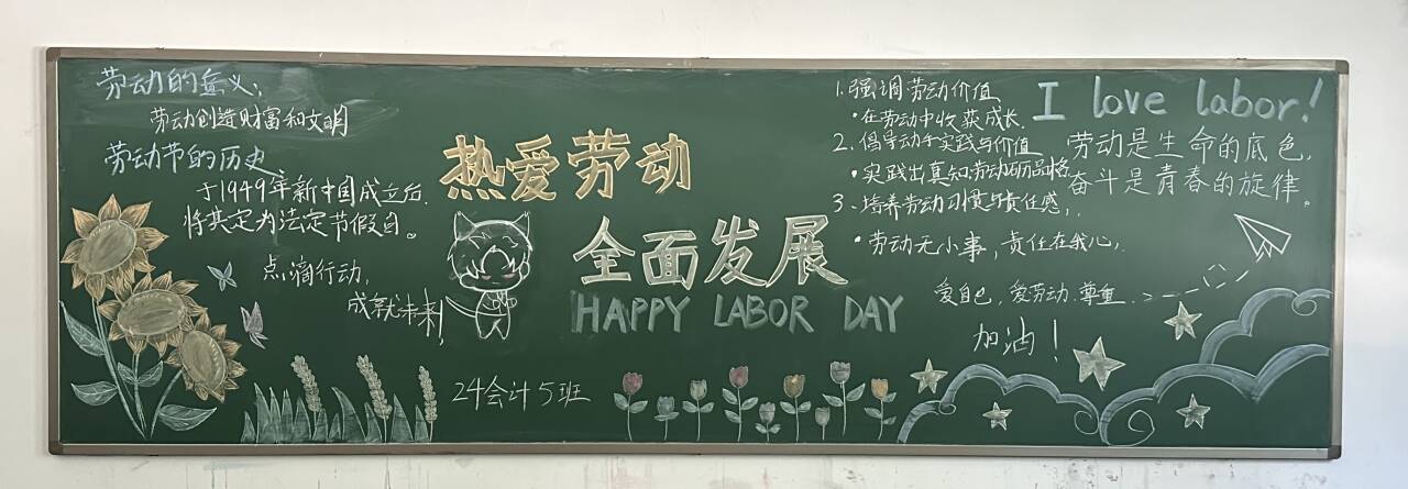 活动期间,该院组织开展了“劳模精神进校园”主题班会、劳动教育专题黑板报评比等活动。通过邀请劳模代表分享奋斗故事、学生自主研讨劳动意义等形式,生动诠释了“爱岗敬业、争创一流”的劳模精神与“执着专注、精益求精”的工匠精神。各班级黑板报设计创意纷呈,以图文并茂的形式传递劳动之美,成为校园内一道亮丽的文化风景线。