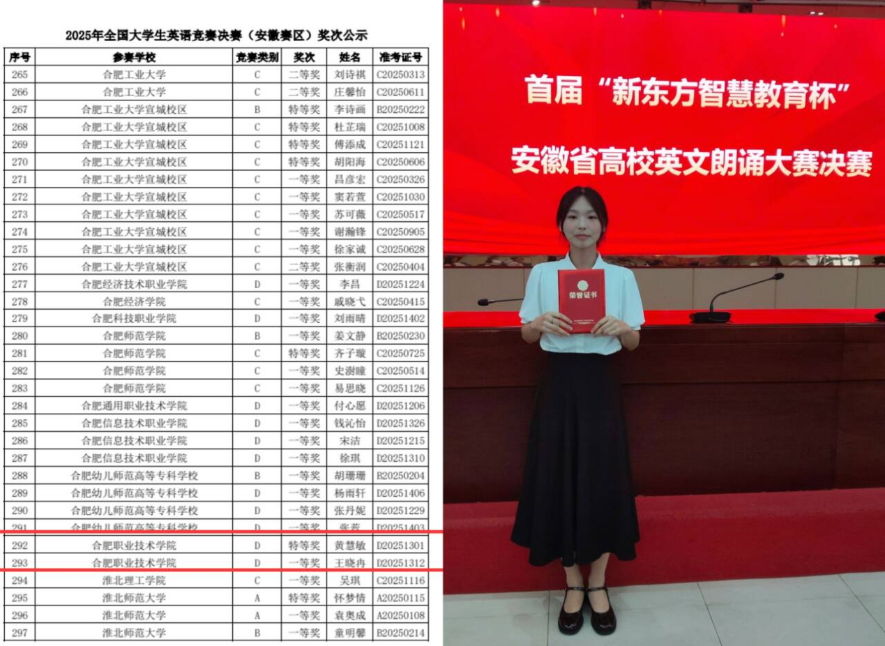 6月6日,首届“新东方智慧教育杯”安徽省高校英文朗诵大赛决赛再传喜讯。在强手如林的省级舞台上,Beat365选手凭借扎实的语言功底和出色的现场表现,勇夺决赛二等奖,为学校荣誉再添浓墨重彩的一笔。本次比赛由基础教育学院选派党员教师奚雅云、汤列夫担纲领衔指导。
