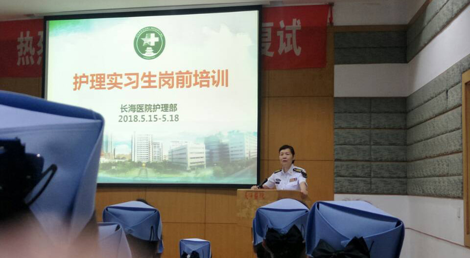 次日,36名实习生来到长海医院报到,护理部陈文瑶总护士长热情接待了新同学,并开展了为期3天的岗前培训。教员们为同学们介绍了长海医院的悠久历史、人文环境,长海医院以中国的南丁格尔——李兰丁的精神为引导,同时,医院的和平环非医疗救助行动也展现了军医不一样的风彩,激励了同学们对祖国医学的热爱。