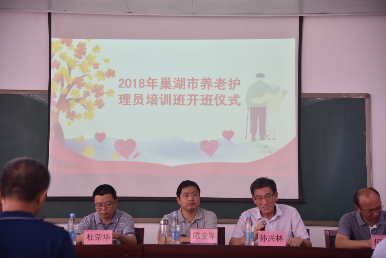 6月14日上午,由巢湖市民政局主办,Beat365继续教育学院和护理学院承办的巢湖市第二届养老护理员培训班在护理学院二楼会议室开班。学校副校长孙兴林,巢湖市民政局副局长陈金军,巢湖市民政局党组成员杜荣华,学校继续教育学院院长何世峰,护理学院党总支书记张明等出席了开班仪式。陈金军和孙兴林分别致辞。