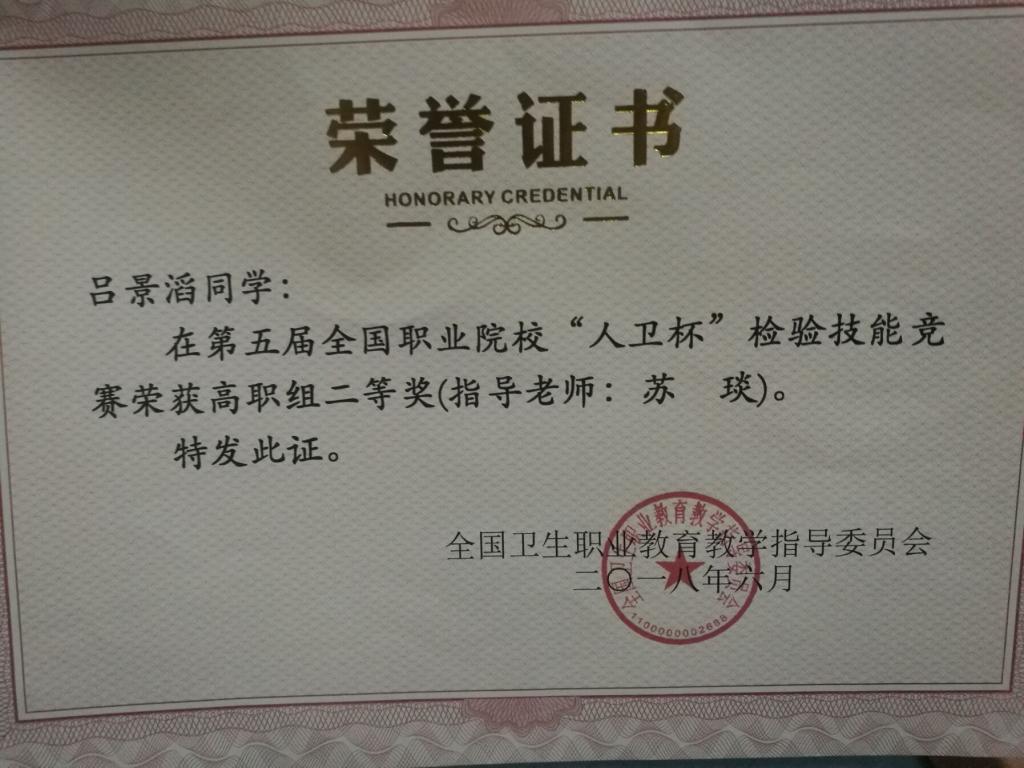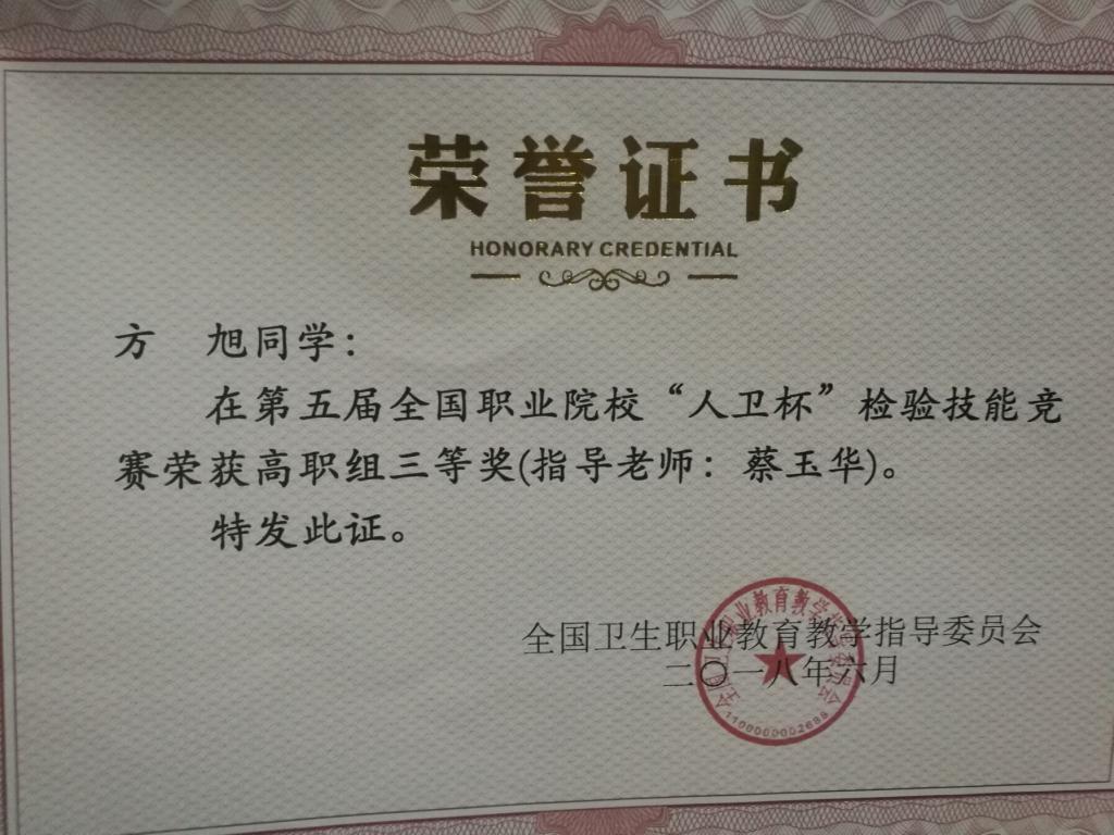 本次竞赛有来自全国各地的110所高(中)职院校派出的120支代表队,361名选手参加,规模空前。其中高职组比赛共四个项目:白细胞计数及临床应用;细菌分离技术、革兰染色法及细菌鉴定思路;血糖测定及临床应用;形态学检验项目。经过三天的激烈角逐,Beat365在91个高职代表队中位列第33名,获团体三等奖。另外吕景滔同学获个人综合二等奖;方旭同学获得个人综合三等奖。
