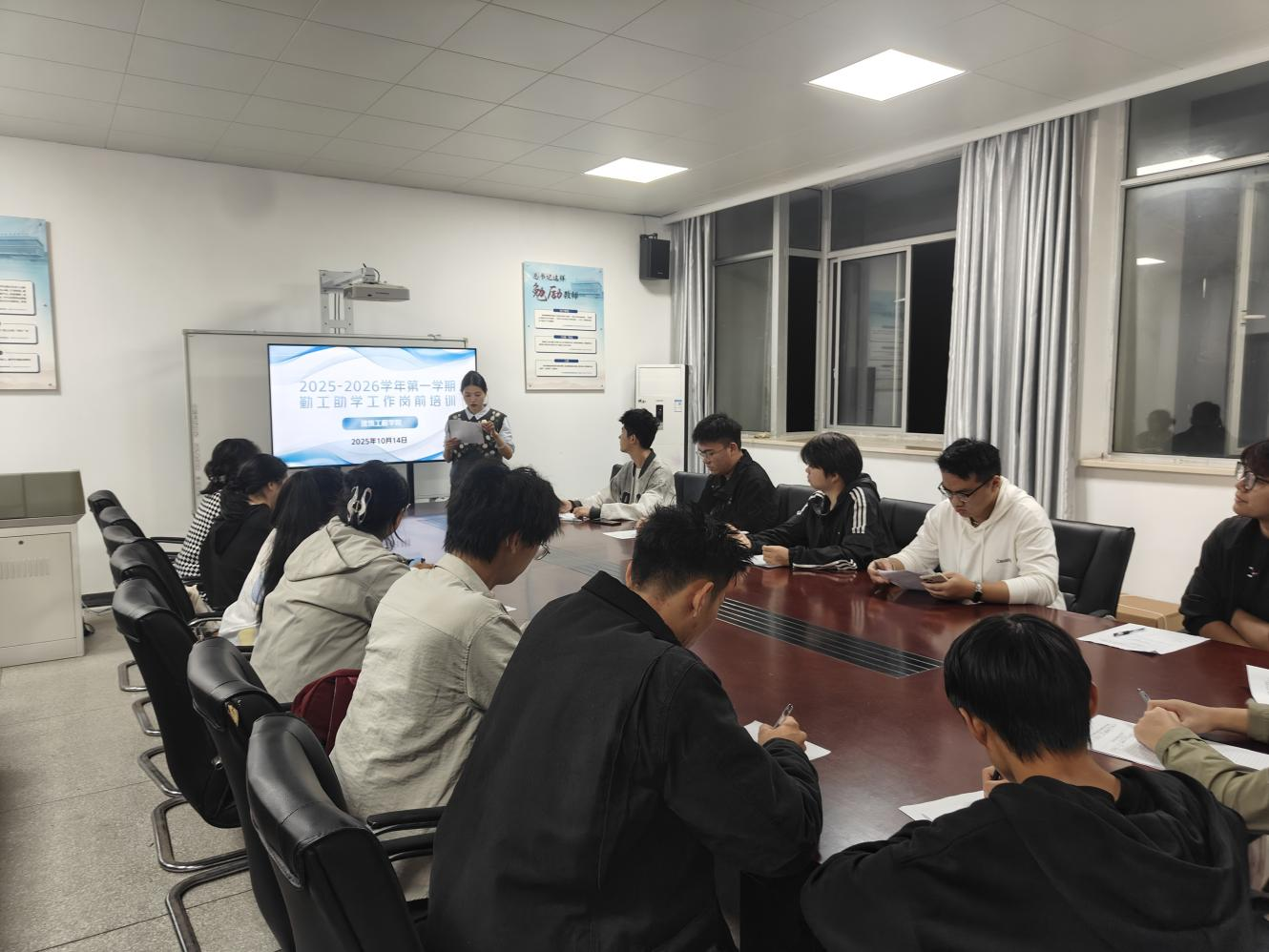 为规范学生勤工助学管理工作,积极发挥勤工助学育人功能,帮助勤工助学学生明确岗位要求、提升履职能力,10月14日下午,建筑工程学院在建工楼213会议开展2025-2026学年第一学期勤工助学岗前培训。本次培训覆盖学院24级、25级固定用工及临时用工学生。该院负责勤工助学管理的团总支书记昌逸文,为学生们带来了一场兼具实用性与指导性的岗前“充电课”。