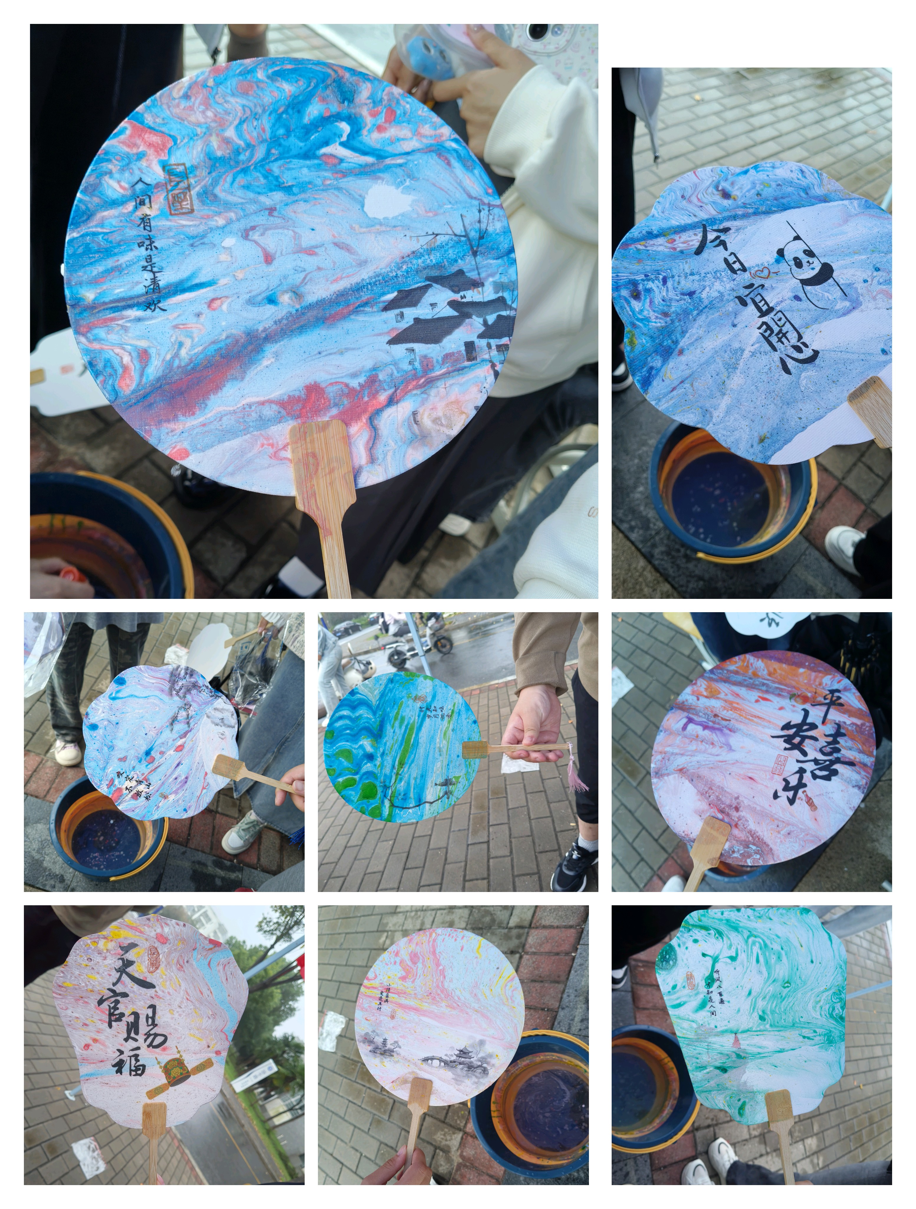 二食堂门口的 “非遗漆扇DIY” 成为焦点,同学们在志愿者指导下体验 “漂漆” 技法,将大漆滴入水中形成纹理,再提扇定格独一无二的纹路。大一新生周同学手持漆扇兴奋地说:“每把扇子都是孤品,就像我们的青春!”