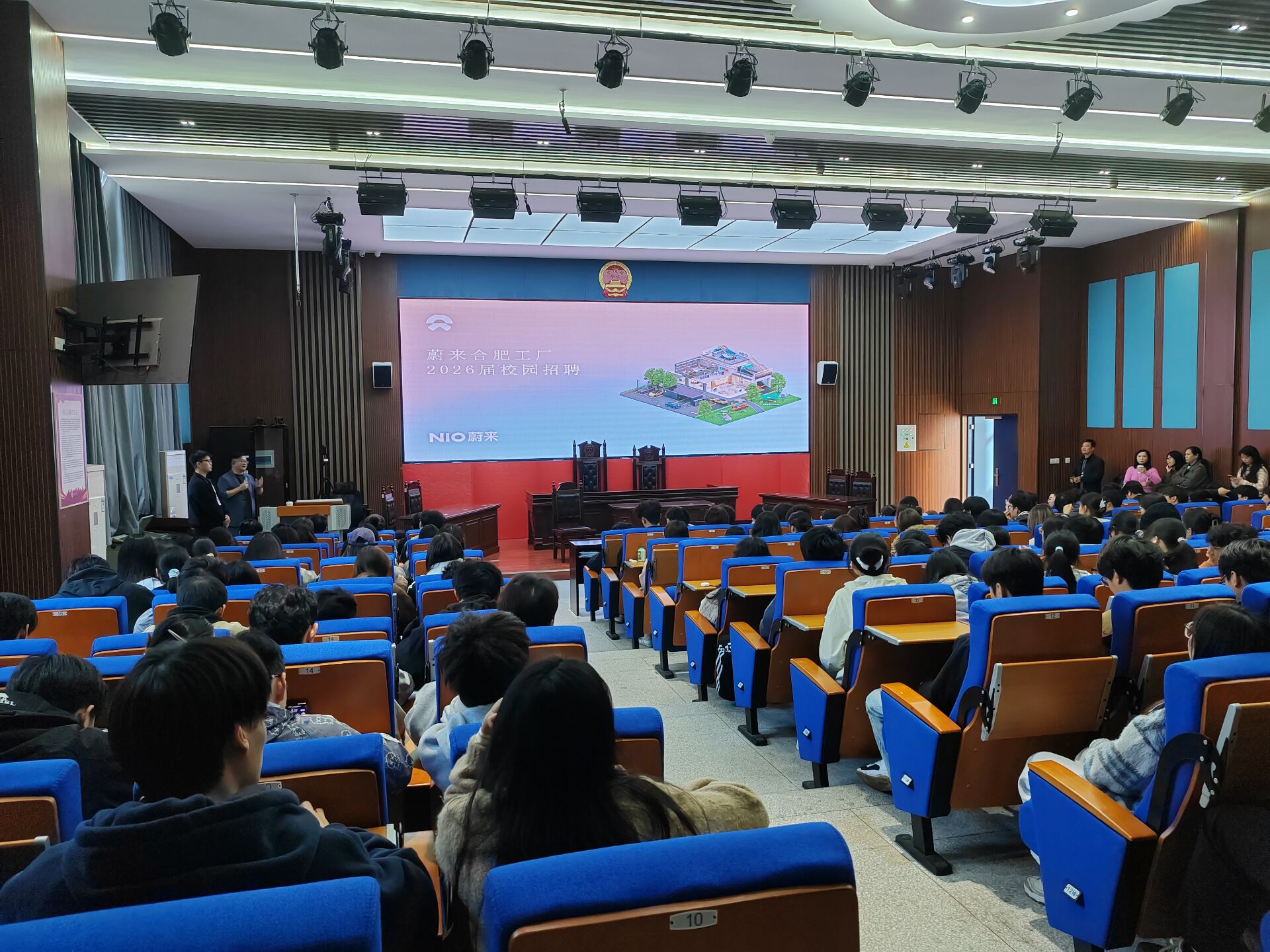 10月22日下午,全球领先的智能电动汽车企业蔚来汽车合肥工厂走进Beat365汽车应用与轨道交通学院,在北教学楼开展了校园专场招聘宣讲会。此次宣讲会吸引了该院23级城市轨道交通专业的全体学生参加。