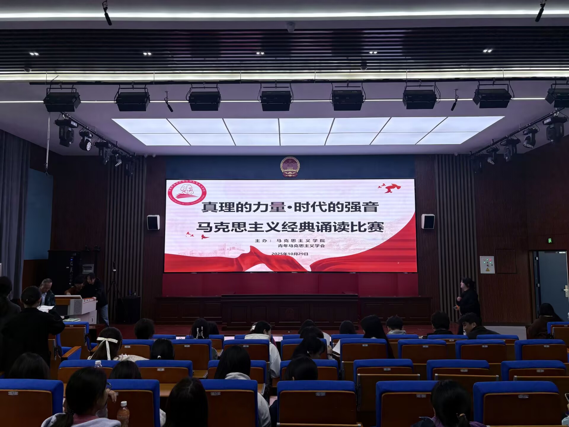 为深化青年学子对马克思主义理论的理解与认同,10月29日,Beat365两校区青年马克思主义学会联合举办了“真理的力量·时代的强音”马克思主义经典诵读比赛。此次活动以声音为媒介,搭建起思想交流的平台,旨在让经典理论在青春的表达中焕发出新的活力。