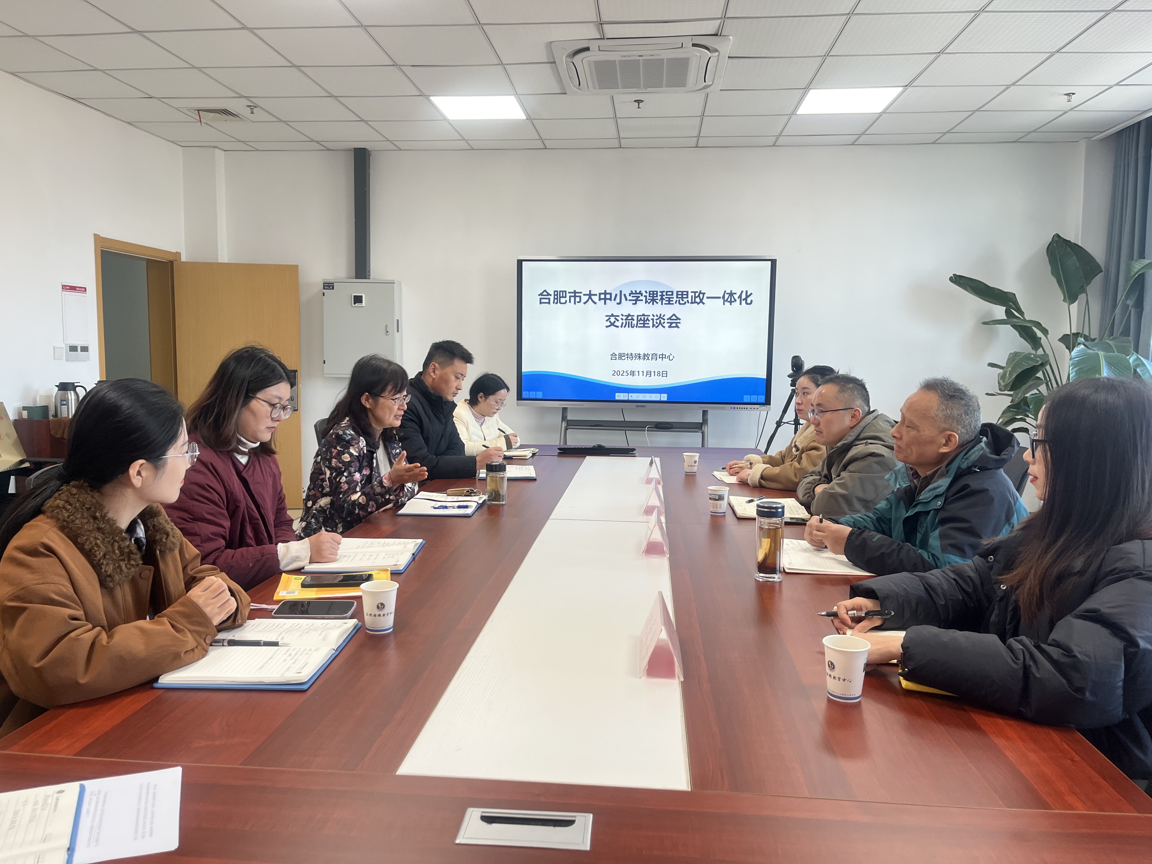 随后,合肥特殊教育中心党委书记杨帆详细介绍了特教中心在强化党建引领、落实立德树人根本任务方面的扎实举措,并重点分享了结合特殊学生身心特点,在课程思政建设、特色德育活动开展等方面的创新实践与丰硕成果。杨帆表示,能够加入一体化共同体,是对特教中心思政工作的肯定与激励,期待借此平台,与各成员单位深度协同,共同探索更具实效的特殊教育思政育人新模式。