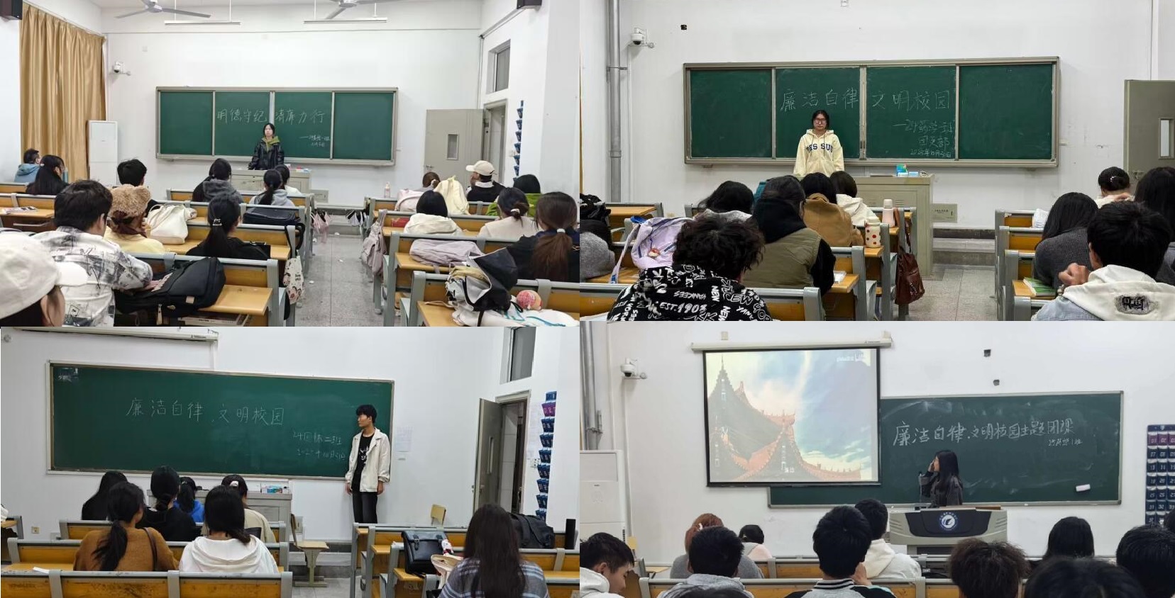 “廉洁自律 文明校园”主题团课。为进一步激发青年学子廉洁自律的责任感、使命感,教育引导同学们自觉廉洁修身,助力校园廉洁文化建设。团总支组织全院开展了“廉洁自律 文明校园”主题团课。各班团支部书记通过讲解团章中对团员和团干部“廉洁”方面的要求,结合社会热点案例分析,剖析了“廉洁”在当代社会的深刻含义,通过互动交流研讨的方式,引导团员青年坚定理想信念、涵养廉洁文化、加强自我约束、严守纪律规矩。