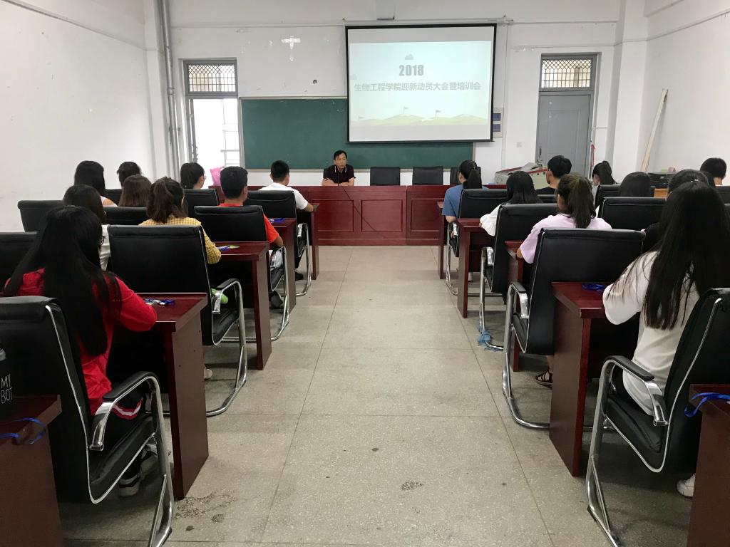 云天高远,秋风袅袅。为了做好生物工程学院2018级迎新工作,全面服务好新生,我院于12日召开迎新志愿者动员大会暨培训会。院党总支书记宁业群、专职辅导员以及前期精心选拔的89名学生志愿者共同出席了会议,会议由团总支书记杨晨主持。