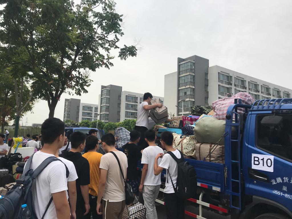 到达新校区后,师生马不停蹄地开始卸行李,党员老师为学生看护行李、搬行李、找工具、帮学生解决各种问题,一直工作到1点,帮学生们行李都搬到寝室老师们才去食堂吃饭。