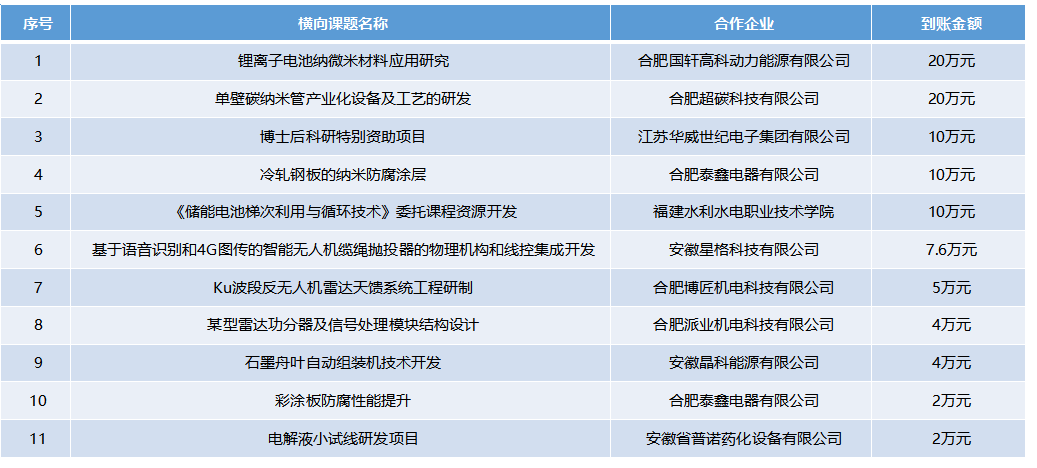 依托微尺寸材料储能研究中心开展横向课题一览表