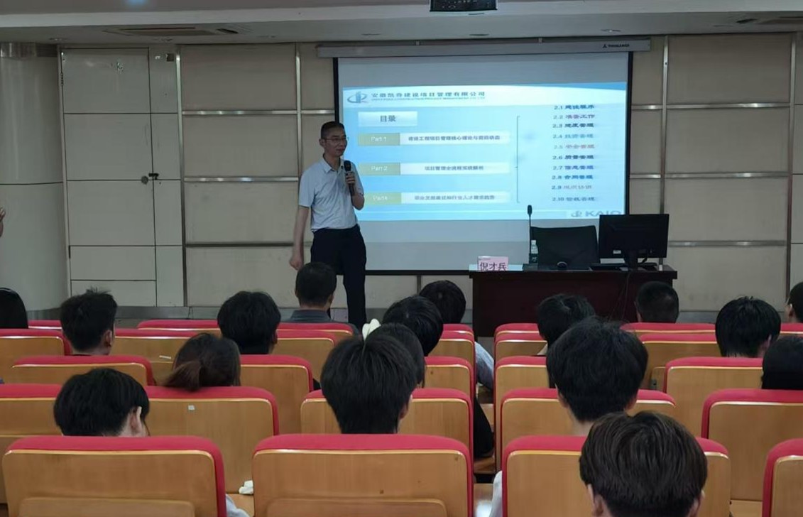 为进一步深化师生对建设工程项目管理领域的理论与实践的认知,拓宽专业视野,5月21日下午,建筑工程学院举办“建设工程管理项目实践”职教周主题学术活动。此次讲座邀请了安徽凯奇建设项目管理有限公司副总经理、正高级工程师倪才兵主讲,讲座由该院副院长邓勋主持,来自工程造价、工程管理专业的120余名师生共同聆听了讲座。