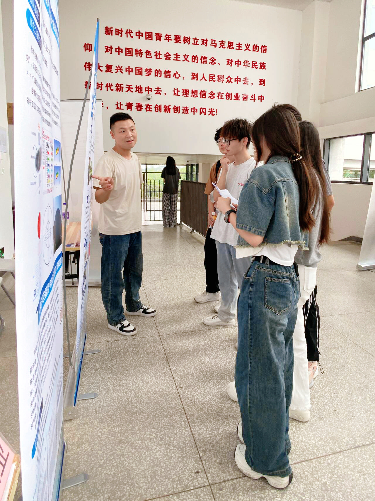 成果展现场,博士们热情地向参观的师生介绍自己的研究成果,分享科研心得与创新经验。参展师生们兴致勃勃地观看展品、聆听讲解,并就感兴趣的问题与博士们展开了热烈讨论。