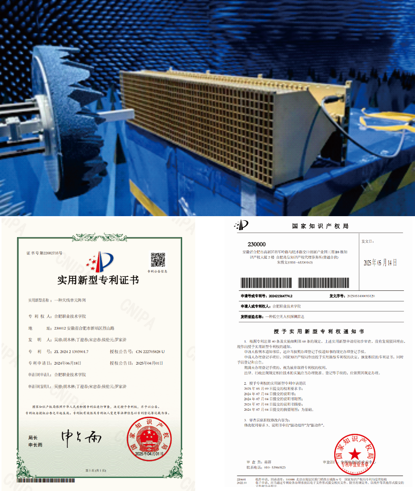 2024年是“低空经济元年”,合肥市人民政府办公室正式印发了《合肥市支持低空经济发展若干政策》,其中第三条是支持高校院所对低空经济关键技术的研发。低空经济作为战略性新兴产业和新质生产力典型代表,是以低空飞行活动为核心,将带动无人机技术的快速发展,随之而来的便是低空安全问题。吴睿带领团队联合安徽大学微波技术团队和合肥博匠机电科技有限公司,通过三方合作的产学研项目,一起解决由无人机技术发展所带来的公共安全及国防安全问题。他主持研究的《Ku波段反无人机雷达天馈系统工程研制》项目致力于研发一款专门探测“低慢小无人机”的轻量化和集成化程度高的雷达。该雷达的天馈系统是由124个波导天线单元组成,通过真空钎焊的加工工艺,尺寸精度达到±0.02mm,该喇叭形深腔波导天线的研制技术处于国内领先水平。目前,正值学校发展的关键期,课题组正在完成反无人机雷达的整机研制工作,他将坚持不忘初心、砥砺前行!