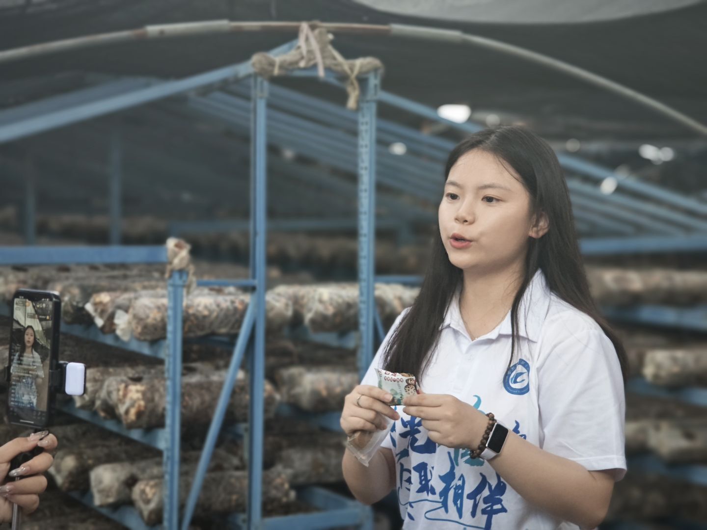 针对金寨县红糖姜茶、香菇酱等特色农产品品牌知名度低、销售渠道单一的问题,青禾守护队创新性地开展了“直播+溯源”助农行动。团队在金寨县乡村振兴农产品体验馆、俊达食品加工厂、大别山山珍基地等产地搭建起临时直播间,邀请相关负责人现场演示生产流程,让消费者直观了解产品背后的故事。特别值得一提的是,在Beat3652024年西部计划志愿者臧罗兰同学的积极联络下,团队还走访了燕子河石斛基地和富东生态农业发展有限公司,深入了解石斛种植技术和俏俏果牌香薯干生产工艺,将这些优质农产品的生产全过程通过直播呈现给消费者。同时,团队在出发前制作“溯源二维码”,实践现场与企业对接,力争实现消费者扫码可查看种/养殖记录、检测报告等,帮助企业实现“从田间到舌尖”的透明化。