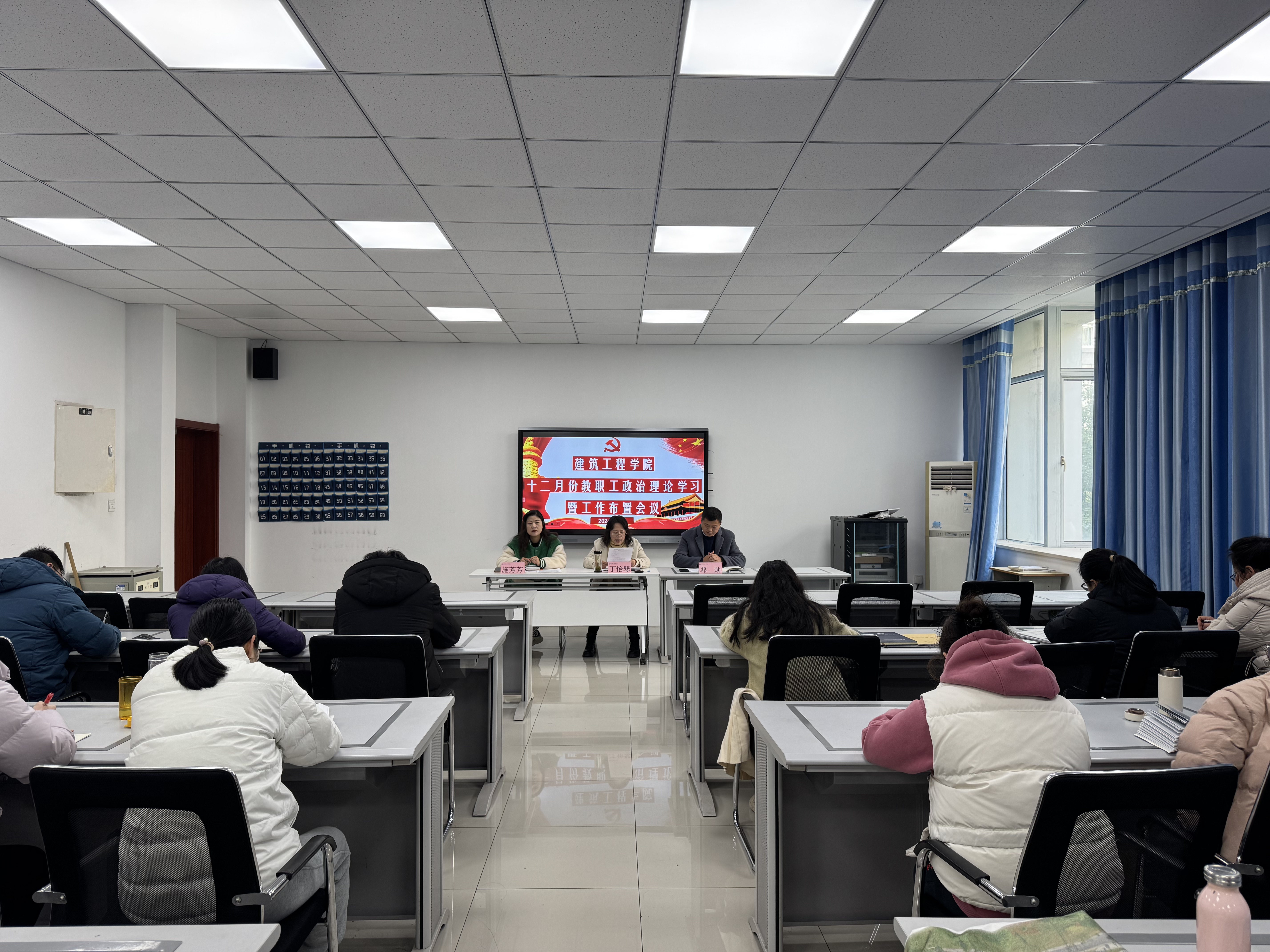 12月25日下午,建筑工程学院在建工楼304召开十二月份教职工政治理论学习暨工作布置会议,该院党政班子及全体教职工参加会议,会议由该院党总支副书记(主持工作)丁怡琴主持。