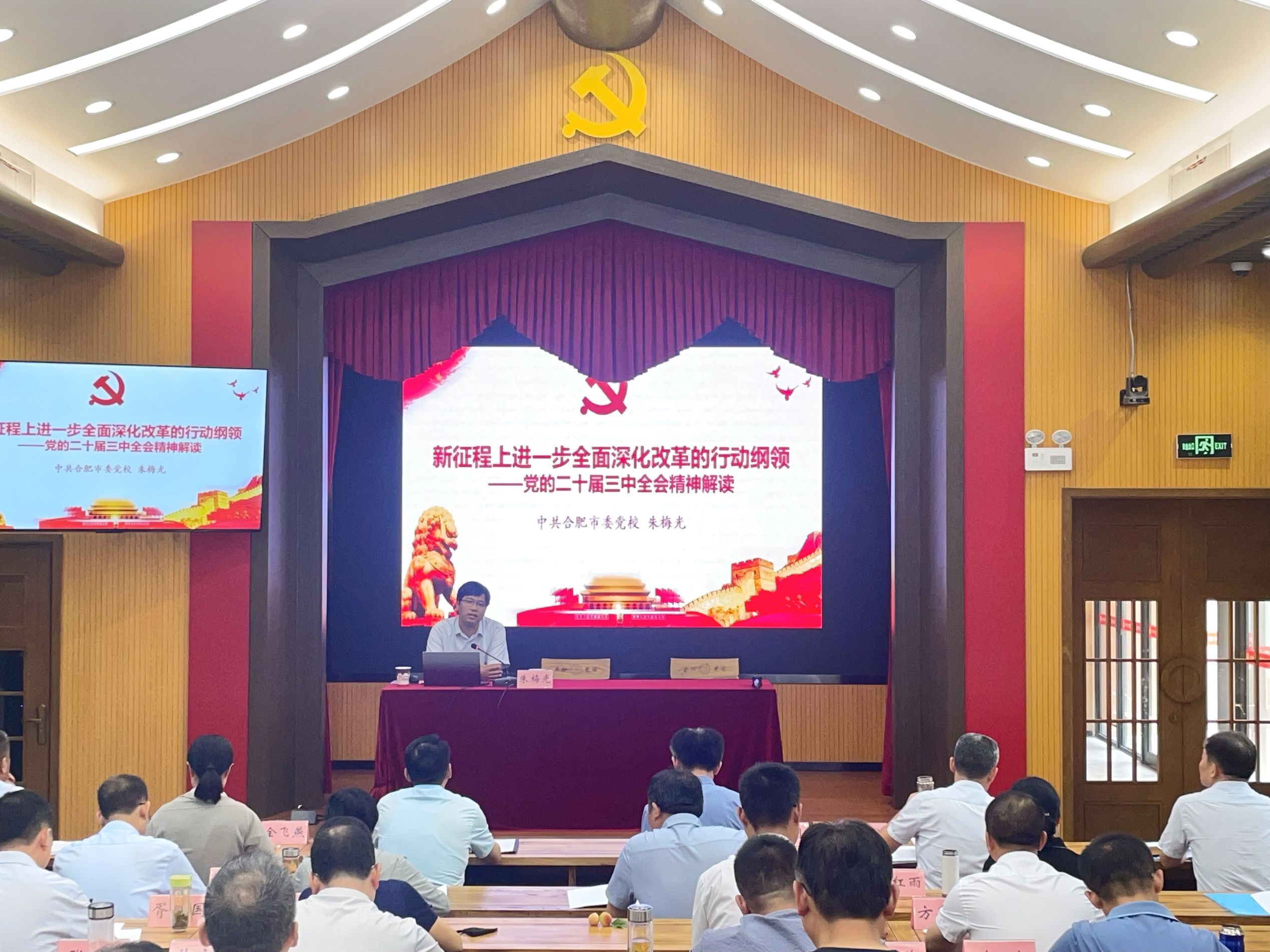 8月19日上午,在庐阳区委党校,本次培训正式开班,校党委副书记、校长檀明主持开班式。校党委书记王杰才作动员讲话,深刻阐释了本次培训班的开设背景和现实意义,并提出了具体明确的要求,希望Beat365领导干部在为期5天的培训中围绕“贯彻三中全会精神,我们要改什么?怎么改?”“专业如何对接合肥产业”等重点议题,树立改革意识,坚持问题导向,切实提升“政治三力”,为Beat365“冲高升本”碰撞出思维的火花。开班式结束后,举行了党的二十届三中全会精神专题辅导报告会暨8月理论学习中心组学习会。